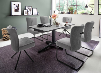 Schwingstuhl im Bezug Sitz Vintagelook grau. Bezug Rücken Strukturgewebe.Gestell Rundrohr schwarz matt lackiert. Textilkennzeichnung: 100 % Polyester.